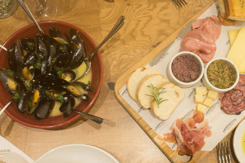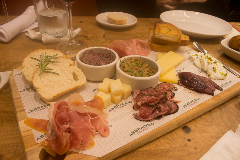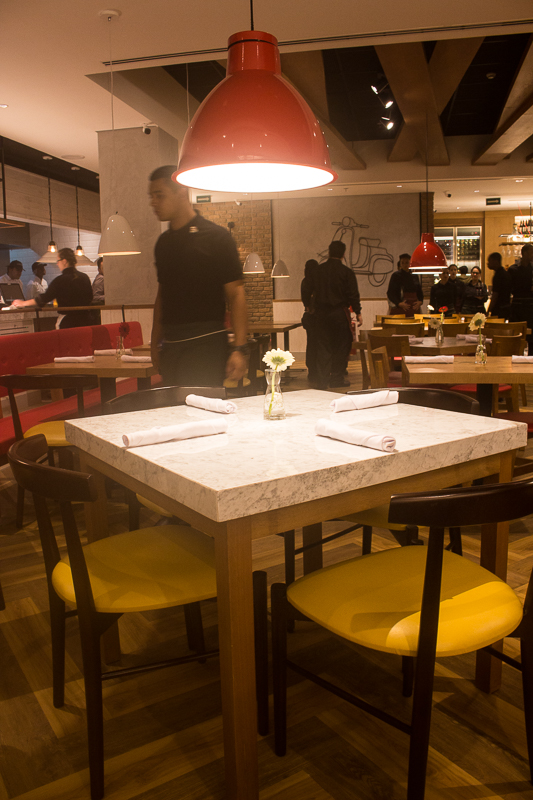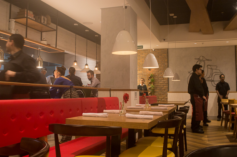 A decoração e design lembram muito as casas e cantinas italianas, porém com um toque de modernidade. Cores da bandeira italiana predominam na paleta e o que gostamos de cara foi a diversidade de “cenários” oferecidos. Eles servem para todo tipo de ocasião e não deixam aqueles que visitam com maior frequência enjoar. Reuniões entre amigos, jantar romântico, bate papo no bar, comemoração ou jantar em família, aniversários, reuniões corporativas enfim, todo evento tem um ou mais cenários bem legais para serem escolhidos no Abbraccio Rio.