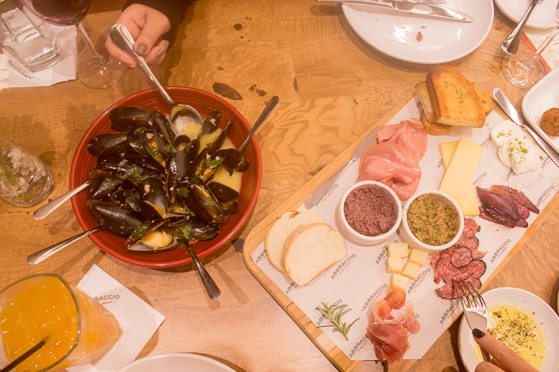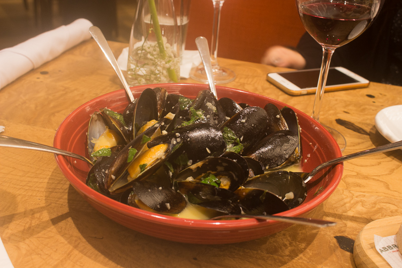 Ainda provamos a Bruschetta Caprese (R$35,00) e o meu outro preferido, o Cozze in Bianco (R$45,00), que são mexilhões cozidos no vapor de vinho branco, manjericão, alho e cebola, servidos com o molho de Burro al Limone. Uma delícia!