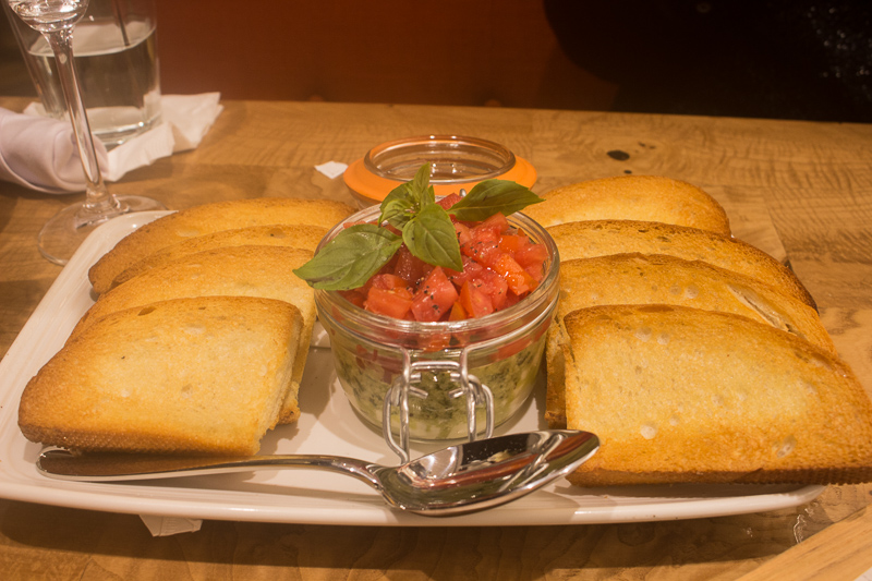 O serviço começa com o tradicional pão da família italiana, quentinho acompanhado por um azeite extra virgem com ervas frescas (cortesia!). Aqui começamos a prever uma noite memorável, o pão macio por dentro e crocante por fora mostra toda diferença da fermentação natural. Outro ponto legal que conecta ainda mais o cliente com a atmosfera italiana é o cardápio com os nomes dos pratos em italiano (e descrição em português, fiquem tranquilos!).