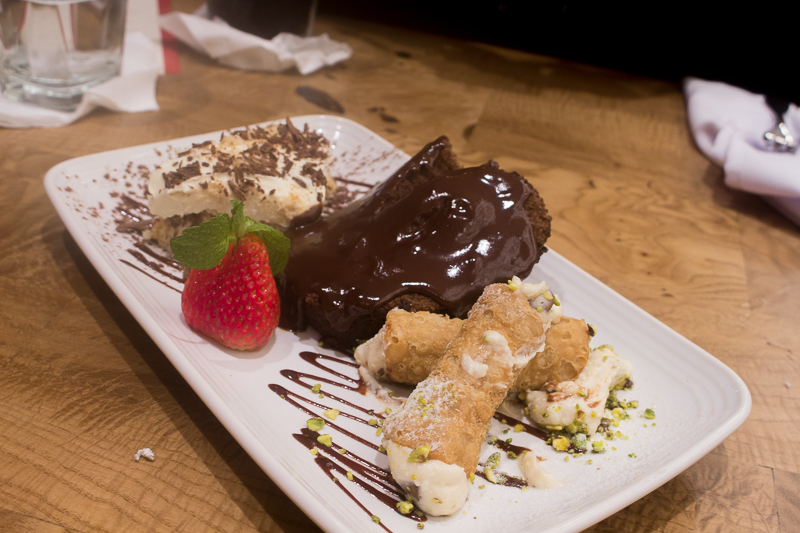 Finalizamos o jantar com um trio de sobremesas preparado para gente experimentar um pouco de cada. São elas: o Mini Cannoli (R$19,50), Tiramisú (R$28,00) e Mini Girelle ao Cioccolato (R$28,00). A mini Girelle estava sensacional, é uma espécie de bolo cremoso de chocolate com avelã, muito bom!
