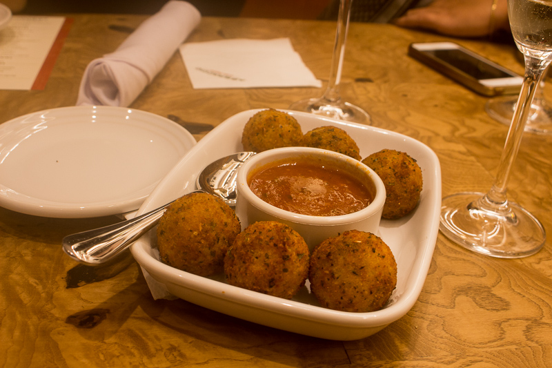 Em seguida começaram a chegar os Antepastos. O primeiro foi o Arancini (R$ 39,00 a confirmar), que são bolinhos empanados de risoto com linguiça tipo italiana e pimentões acompanhado por molho de tomate artesanal, palavra bem presente na cozinha aberta (e gigante) do Abbraccio Rio. Isso mesmo você pode observar tudo o que está sendo preparado pelos chefs, é uma imersão e aproximação muito legal.