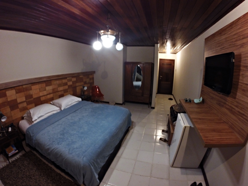 Nosso quarto era bem simples, mas nos serviu bem e não sentimos falta de nada. Conta com uma ampla cama King Size, é bem arejado, com vistas lindas para o mar e para a mata atlântica, lençóis e toalhas de banho de puro algodão egípcio e poltrona para leitura. Tem ainda TV e ar condicionado. E na varanda um rede deliciosa para relaxar e apreciar o sol nascer. Ao todo são 12 apartamentos na Pousada do Alto.