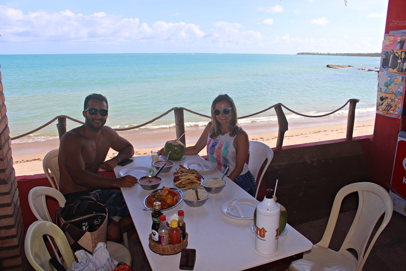 Almoçamos em um dos dias no Praêro Beach Club, em Barra de São Miguel.