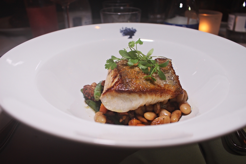 - Dourado com cassoulet de Polvo, feijão branco, cenoura, vagem, caldo escuro de polvo e polvo. O peixe estava muito saboroso, no ponto certo e bem temperado, assim como o polvo.