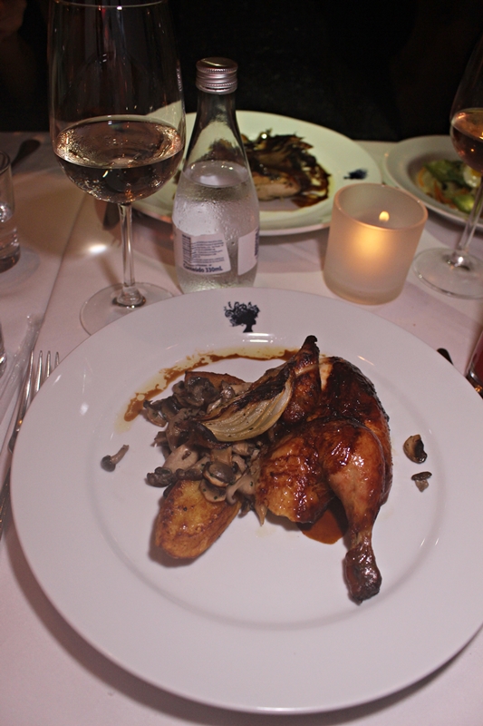 Dourado com Cassoulet de Polvo - Delicioso Galeto, marinado e assado com ervas e trufas, jus de galeto e batata rústica com cogumelos. O galeto estava saboroso, mas não impressionou. Devemos destacar o tempero dele, muito aromático, curtimos.