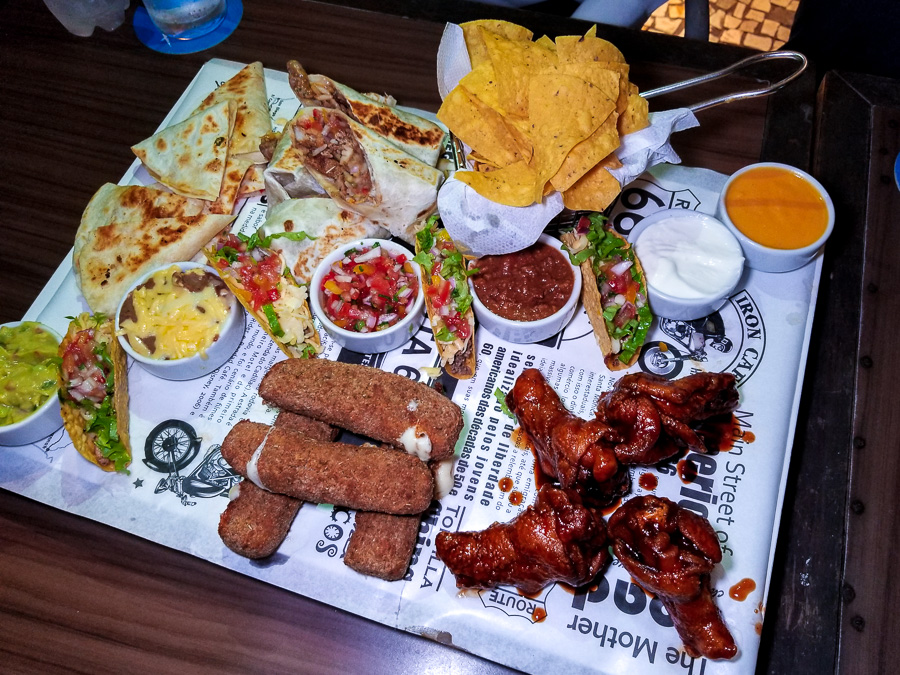 Iniciamos os trabalhos pedindo o clássico e aclamado Super Combo que vem com 4 taquitos, 4 mini burritos, 6 mini quesadillas, 4 buffalo 66, 1 chili com carne e 4 mozzarela sticks (por R$78,00 ). Uma boa pedida para você provar o ideal Tex-Mex (Texano e Mexicano) do bar Rota 66 e dividir com os amigos, pois vem muito bem servido.