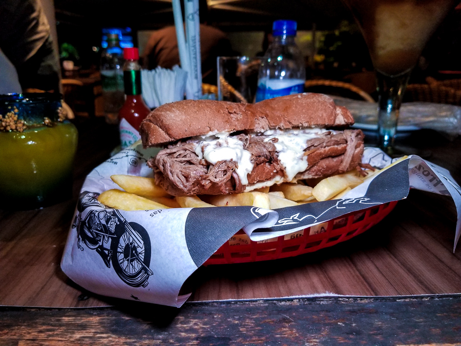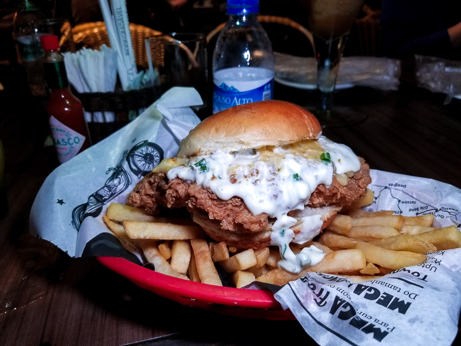 Em seguida fomos conhecer os sandubas. Chegaram à mesa: o Rota Burger (R$34,00), o FFF – Frango F*@# Frito (R$30,00) e o Grandpa’s Sandwich (R$30,00). Esse último feito com o Brisket, um tradiconal corte do churrasco americano, e idealizado pelo avô de uma das sócias do Rota 66.