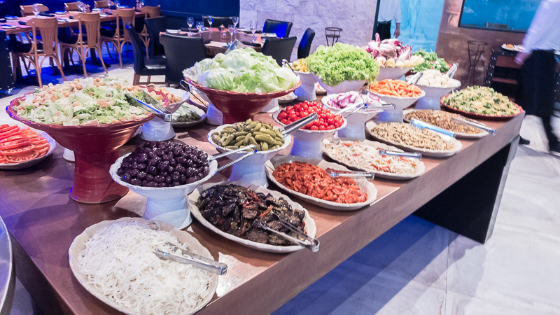 E o buffet frio, que incluem as saladas e peixes frescos está muito bom gente. A variedade é tanta que é possível optar apenas por ele caso você não coma carne ou esteja fiel a dieta. Custa R$65,00 fazer a opção apenas pelo buffet de saladas.