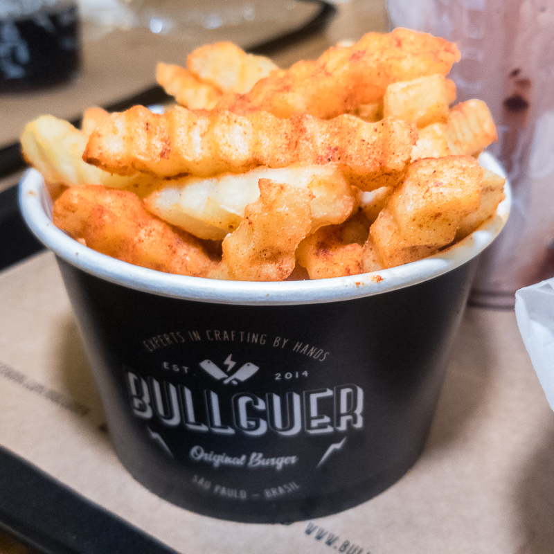 E seguindo uma tendência cada vez mais presente nas hamburguerias, o Bullguer não prepara aqueles hambúrgueres monstruosos com carnes de 200g ou 300g. Cada disco tem 100g, e caso o cliente queria pode ir adicionando quantos quiser. Confessamos que estamos adorando essa pegada nova de hambúrgueres menores e ainda assim bem feitos, no ponto correto. Dessa maneira podemos ter uma experiência completa sem sair rolando da hamburgueria.