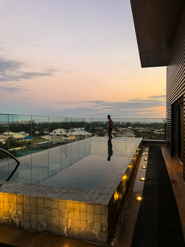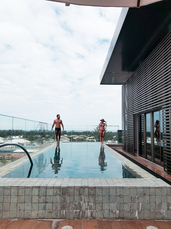 De volta ao hotel fomos curtir o resto do dia no rooftop. Aproveitamos a piscina com borda infinita para tirar fotos e relaxar.
