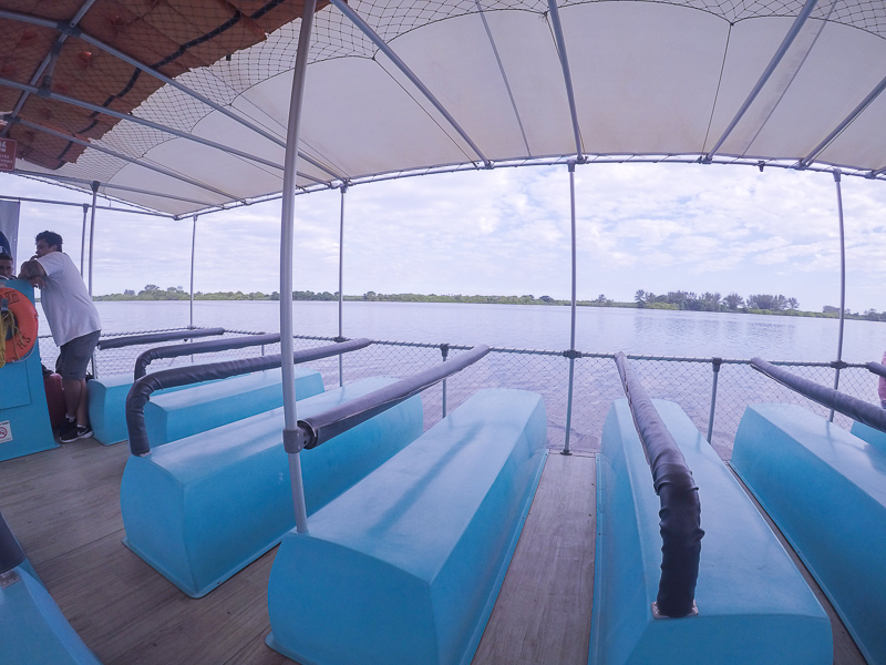 Tudo começa com o ônibus que nos buscou na porta do hotel (assim que fizemos o check-in recebemos a tabela com os horários). Após alguns minutos chegamos a uma estação da Eco Balsas. E com ela fizemos a travessia pela Lagoa de Marapendi até o Eco Lounge.