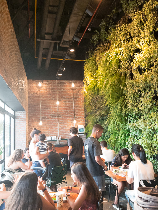 A mais nova casa do Cabana Burger Rio de Janeiro fica localizada dentro do Barra Shopping, na Barra da Tijuca, zona oeste carioca. Ao chegar percebemos um ambiente altamente descolado, a cara de São Paulo. Desde a decoração com um jardim vertical muito bonito, paredes em tons mais escuros até os atendentes, todos jovens e estilosos e conhecedores da casa. A Carol que nos atendeu sabia tudo na ponta da língua e indicava sempre as melhores opções! Adoramos.
