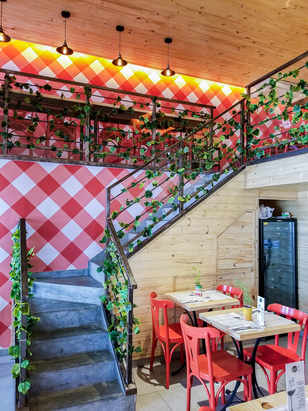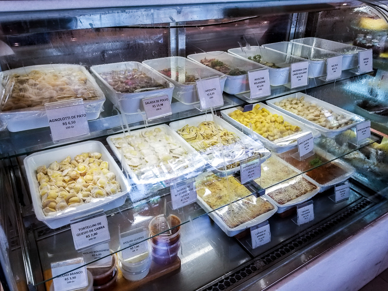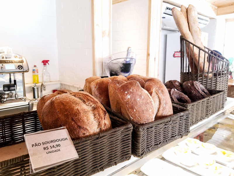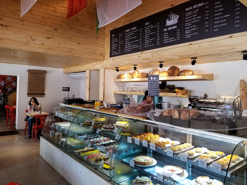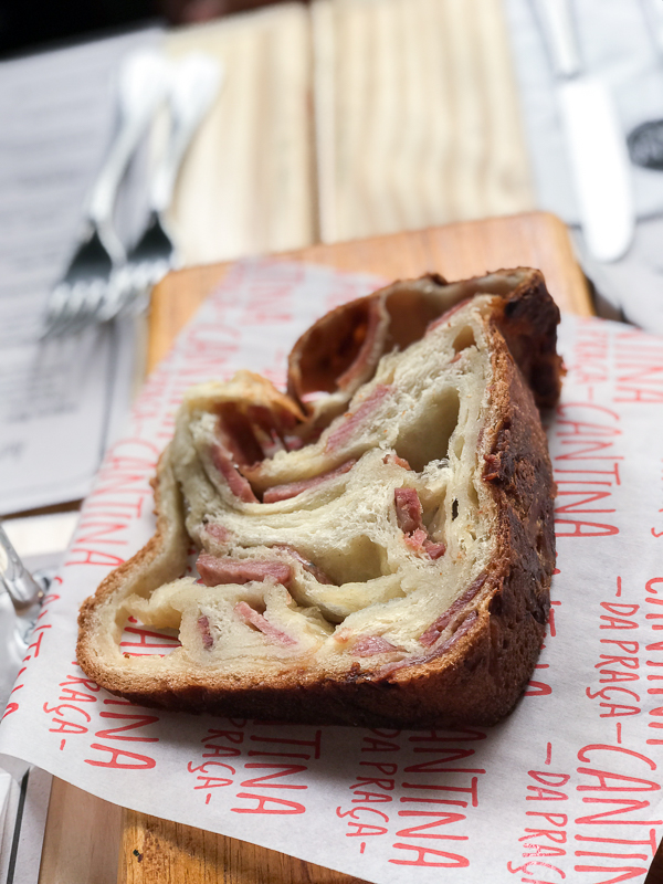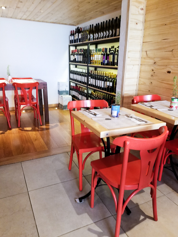 Entrando na casa já nos deparamos com um balcão onde estavam a disposição algumas das delícias da Cantina da Praça. Eu explico. O restaurante funciona também como um empório, onde você pode levar para casa os produtos que gostou de provar no cardápio, isso envolve os pães, as massas e os maravilhosos doces. Além disso é possível pedir diretamente no balcão alguns quitutes rápidos, tem um cardápio gigante na parede para você escolher. Ideal para lanches rápidos, café da manhã etc.