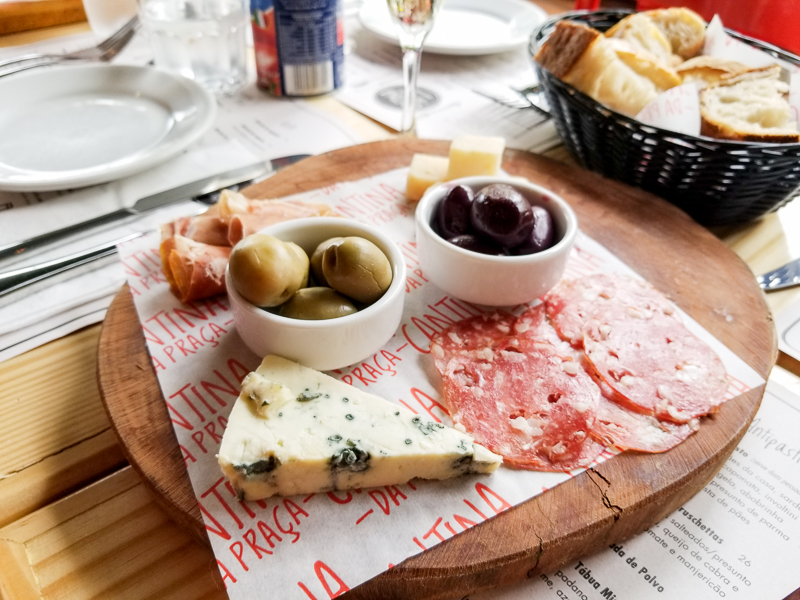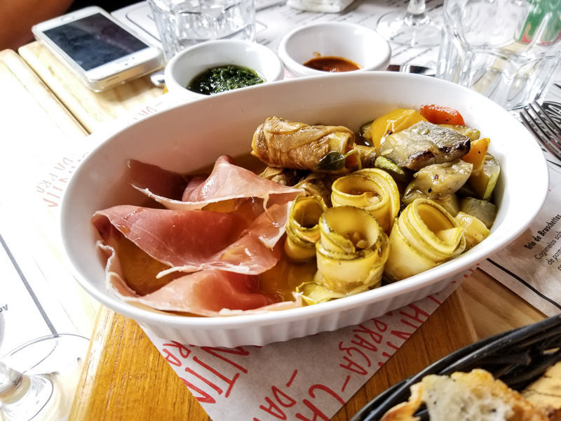 Finalizamos as entradas com o Antipasto Misto (R$29,00) que serve duas pessoas e vem composto de cesta de pães da casa, sardela, alichela, aponata, involtini de beringela, abobrinha grelhada e presunto de parma.