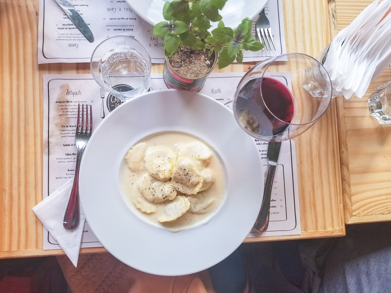 Camila pediu o Agnolotti de Pato com fonduta de grana padano (R$39,00). Uma massa recheada com pato e um molho dos Deuses. A qualidade da massa é sensacional. Muito boa mesmo!