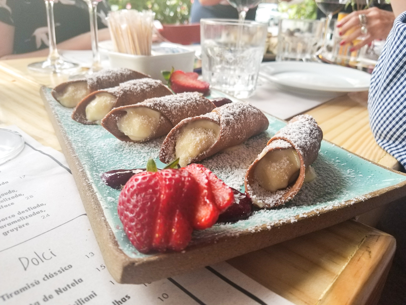 Claro que não poderiam faltar as sobremesas deliciosas. Provamos de um tudo. E sugerimos você se levantar e ir até o balcão interno escolher a sua com seus próprios olhos. Entre as sobremesas disponíveis provamos: Torta de Nutella (R$15,00), Cannoli Siciliani (R$11,00), Torta de Frutas Vermelhas (R$10,00), Torta Mousse de Chocolate (R$10,00) e os Macarons.