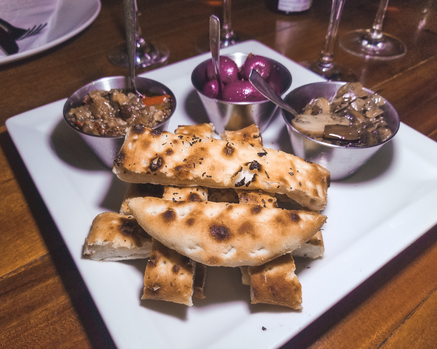 Da ala das entradas e antepastos pedimos o Trio de Antipastos (R$ 28,00). Vem acompanhado da Focaccia produzida na casa e dividido entre trifolatti de funghi, caponata de berinjela e azeitonas. Bela sugestão do garçom que nos atendia e prestava um excelente serviço.