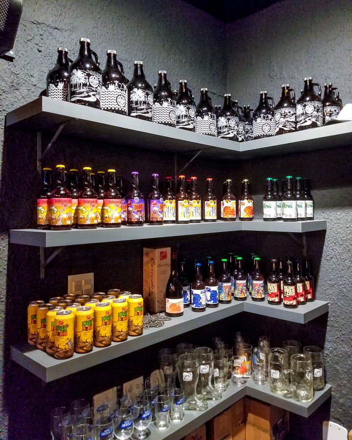 O sistema de contra-pressão continua disponível para todos que quiserem encher seus growlers e é uma ótima pedida, já que aumenta a durabilidade da bebida no recipiente. Entre as opções da própria cervejaria estão Folklore Pils (R$ 2,80/100ml e R$ 28,00/L para encher o growler) e Cabanagem (R$ 4,90/100ml e R$ 49,00/L para encher o growler). Por falar em growler, os clientes que tiverem os de vidro do Artesanato da Cerveja (antigo bar do local) terão sempre 10% de desconto no valor do litro para enchimento de growler.