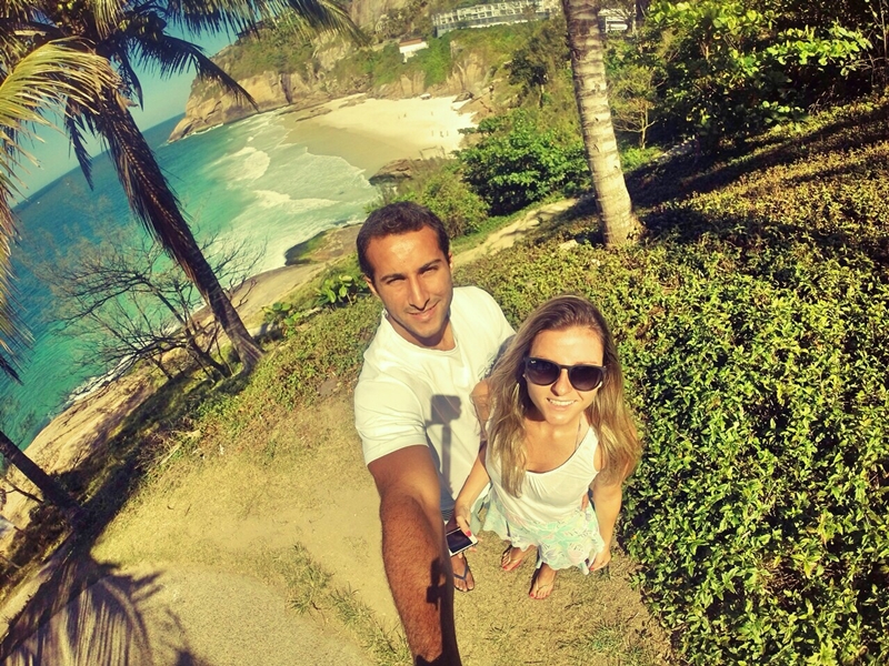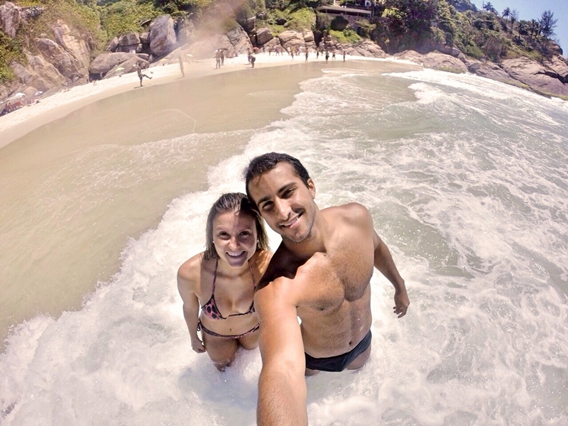 Tanto a escada para descer até areia quanto as pedras são os motivos que muitos desistem de ir, mas acreditem que é super tranquilo chegar à praia. Podem ir sem medo! ( Camila sempre encalha nas pedras, mas no fim aproveita bastante – risos )