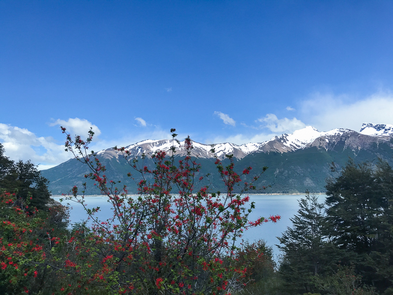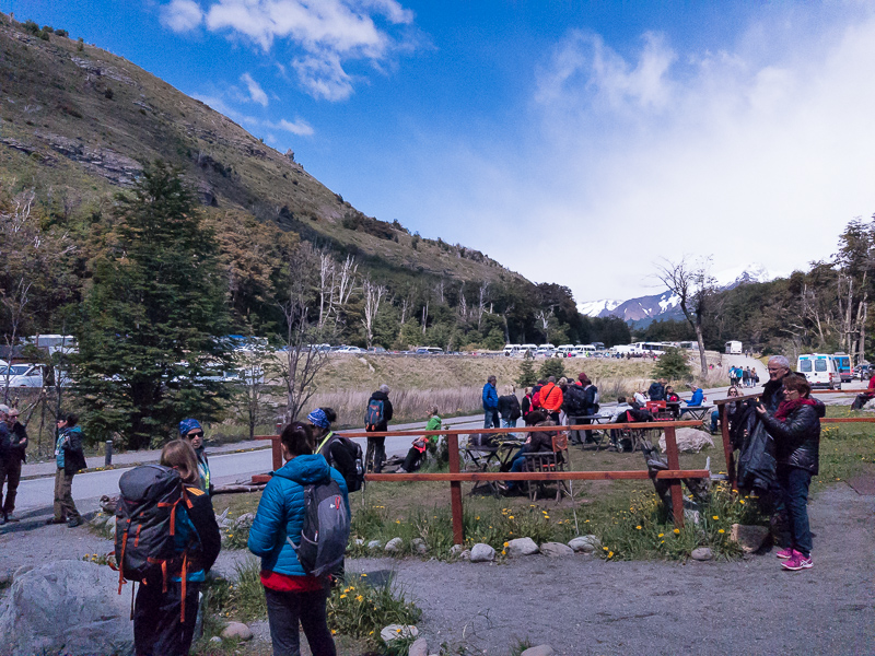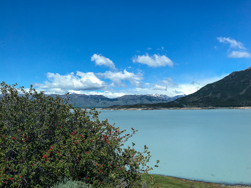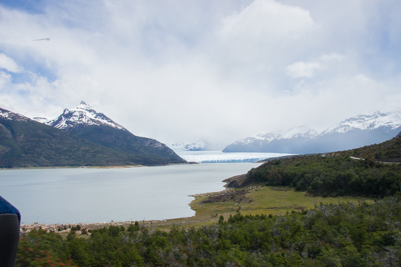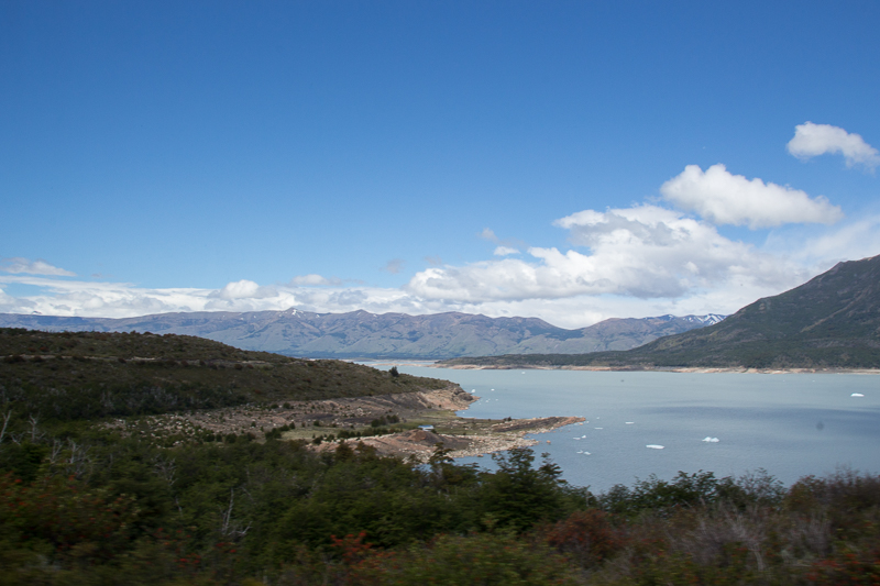 Um ônibus de viagem grande nos buscou em nosso hotel às 7h45min e partimos rumo ao Parque Nacional Los Glaciares. No trajeto uma guia experiente e bilíngue (Rosana) foi nos contando sobre a história e curiosidades dos locais que passávamos. Demorou cerca de 1h30min até chegar ao Parque Nacional Los Glaciares.