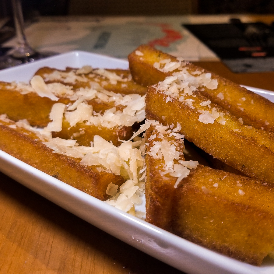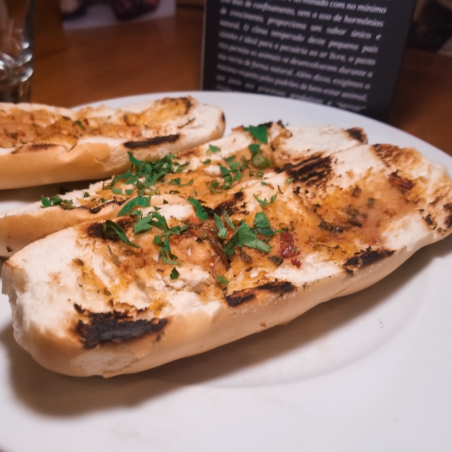 Do Brasil experimentamos o Pão de Alho, o queridinho do churrasco, e a Polenta frita com parmesão ralado, muito boa!