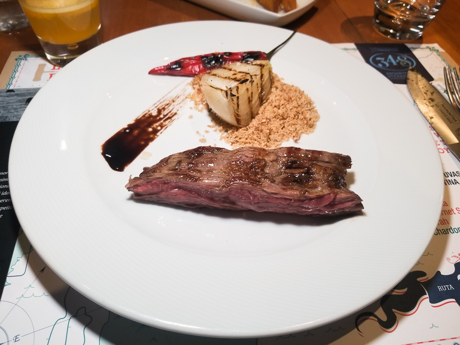 O serviço para apresentação dos cortes especiais começou com o Pulpon de Vacio que é descrito da seguinte maneira no cardápio: “um dos cortes mais tradicionais da culinária portenha. Possui menor teor de gordura mas mantém a maciez, sabor e suculência inigualável!“. Realmente o corte é limpo e suculento, para nós aqui do Brasil é o equivalente a Fraldinha, corte com sabor característico. Custa R$ 98,00 e vem com aproximadamente 300 g de carne. Lembro aqui que os valores não incluem acompanhamentos!