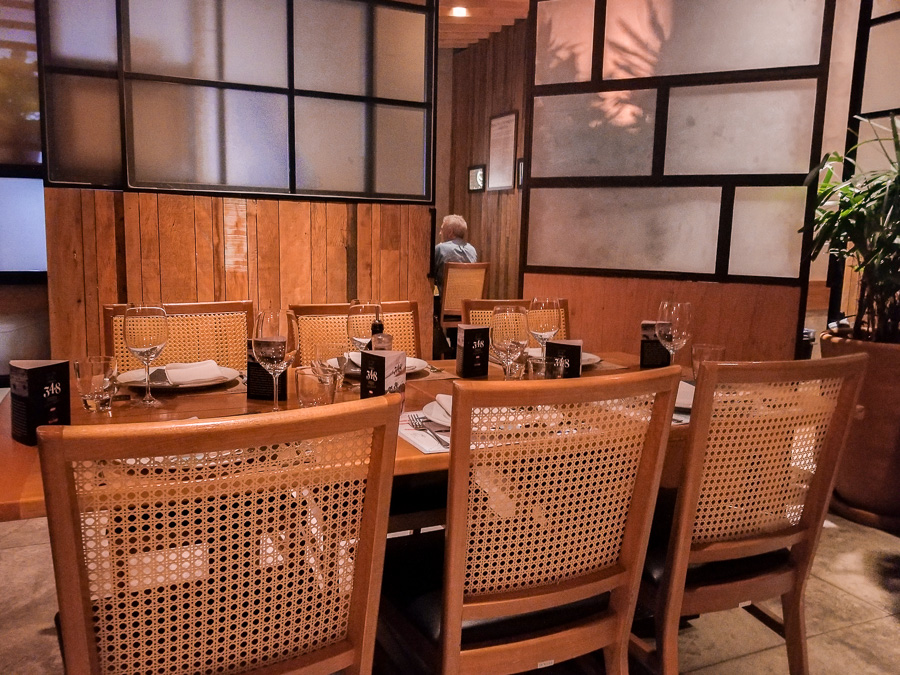 Localizado em espaço amplo e bem dividido, ele agrada em todos os tipos de comemorações ou ocasiões. Tem bastante espaço na varanda aberta de frente para os iates, assim como nos salões internos com iluminação e decoração que remetem as casas de carnes argentinas. O restaurante é lindo!