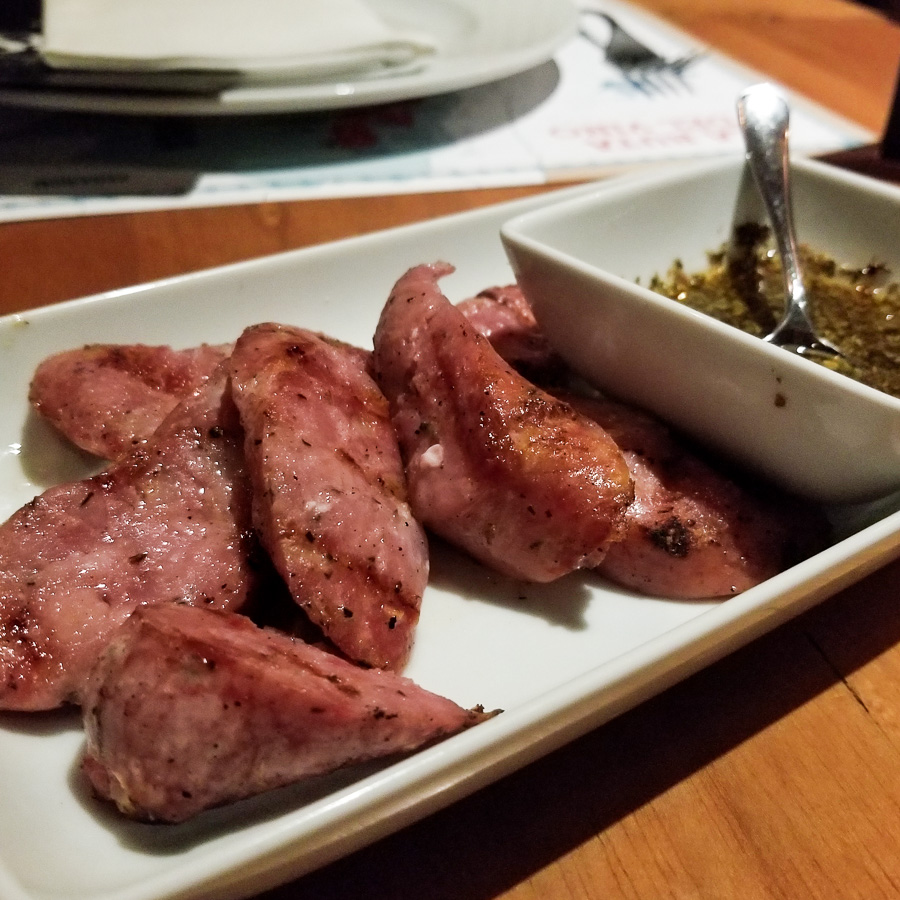 Começamos com as tradicionais Empanadas Argentinas, massa leve e recheio de carne muito bem temperado, uma delícia. Seguimos para a Linguiça Argentina e o Choripã, ambos também estavam uma maravilha.