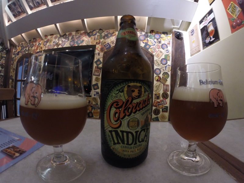 Por fim, pedimos a cerveja Colorado Indica 600ml – 7,0% álc c/ Rapadura, uma IPA E DOUBLE. A saber, as India Pale Ale têm um forte componente de lúpulo, essencial para conservar a cerveja durante o máximo de tempo. Os exemplares americanos conseguem ter um sabor e aroma ainda mais pronunciados de lúpulo, fruto do gosto dos consumidores daquele país. A cor das cervejas deste estilo varia entre o amarelo dourado e o acobreado. Diferenciam-se das English Pale Ale e das Bitters por terem um sabor final com mais lúpulo e menos caramelo. Custou R$29,00.