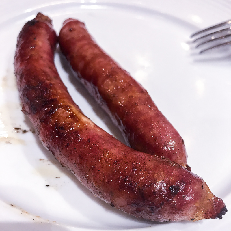 Porém, antes de iniciarmos a escolha da proteína, pedimos de entrada a Linguiça Defumada Artesanal (R$6,00). Ela vem acompanhada de Farofa Crocante, Batatinha Portuguesa e dois molhos: Chimichurri e À campanha . Estava maravilhosa, não deixem de pedir!