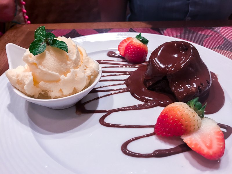 Pedimos primeiro o Petit Gateau de Chocolate (R$22,00). Esse conquistou o coração da Camila já de cara. Vem com sorvete de baunilha e calda de chocolate, impossível não ser bom né?!