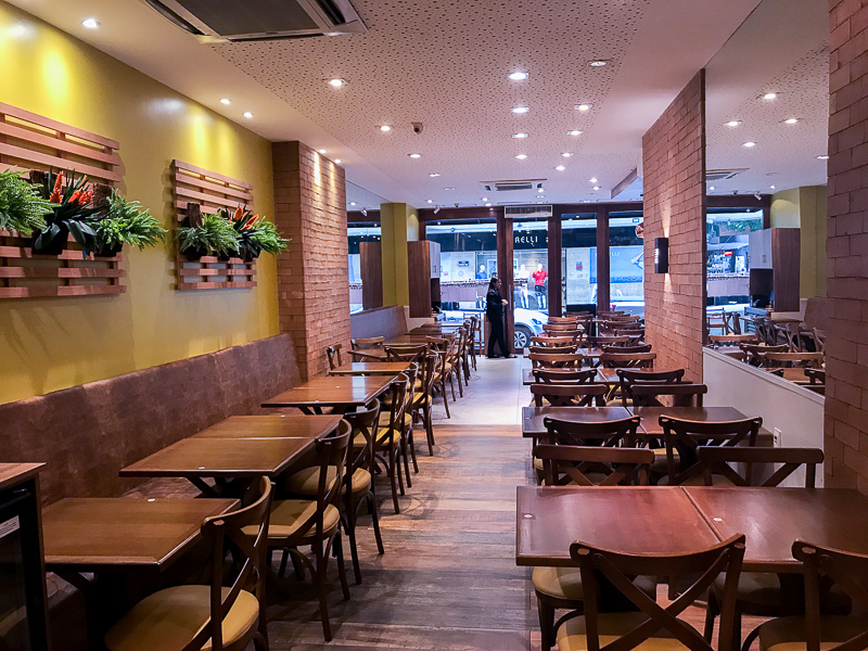 O espaço do restaurante é bom, não é muito grande. Mas lá dentro ficamos confortáveis, sem ninguém muito em cima.