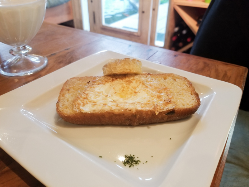 Baguetinha na Chapa com Manteiga (R$5,90), ela vem bem servida, são grandes. Camila e eu dividimos.