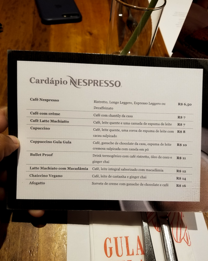 Outra novidade é carta de cafés preparados em uma máquina ultra moderna da Nespresso. Nós provamos 3 receitas e adoramos!