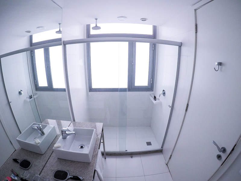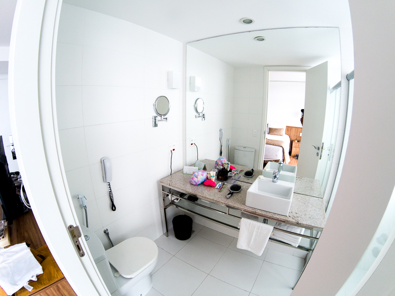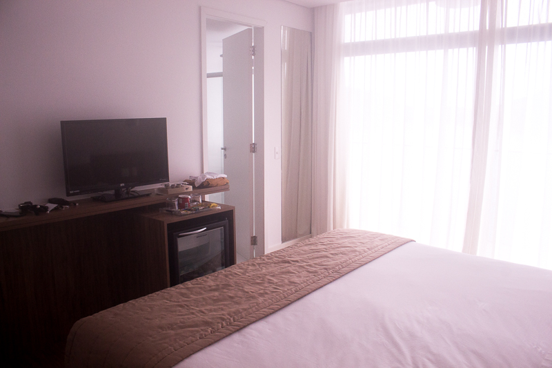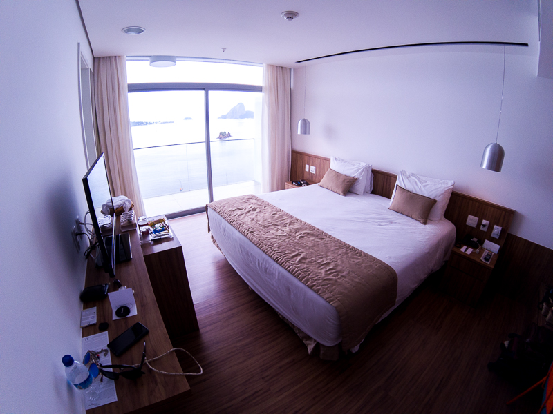 Nos hospedamos na suíte chamada de “Frente Mar Premium”, localizadoa no 16º andar. E como o nome sugere, a vista era espetacular, então anotem aí, podem pedir sem erro o quarto 1606.