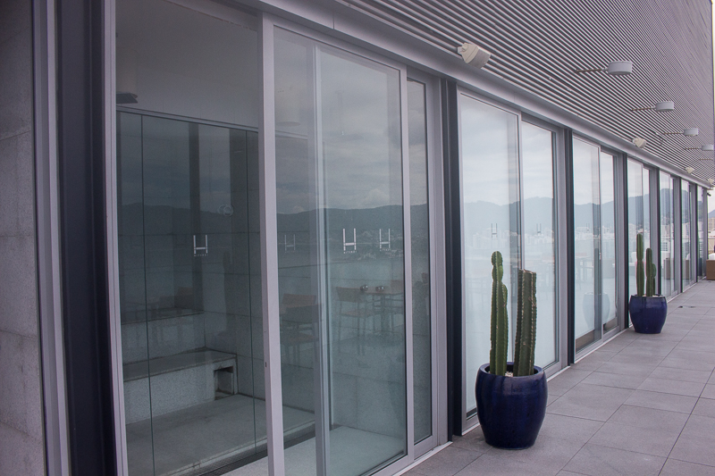 Ainda na cobertura a gente encontra um Deck bar, sauna, muitos lugares para sentar e tomar um drink e é claro o belo visual.