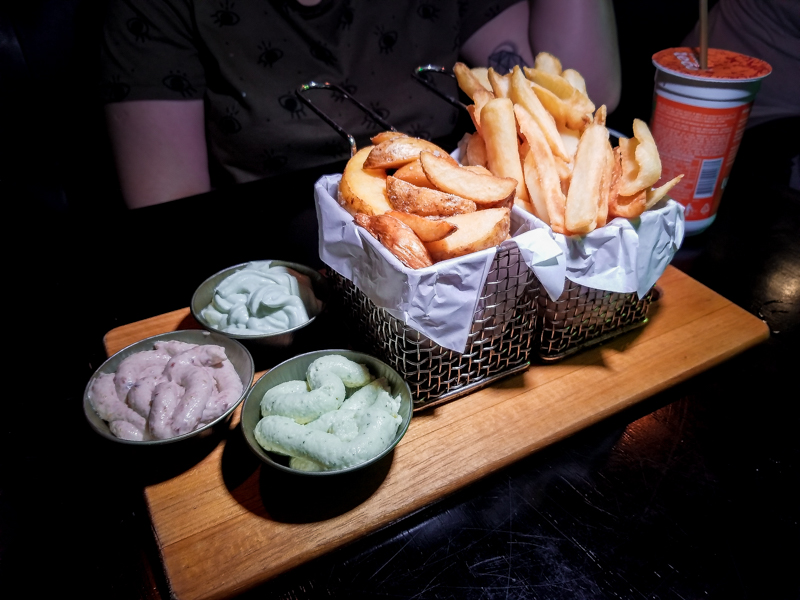 Para acompanhar pedimos as batatas da casa com maionese (de leite) de bacon, wasabi e ervas por R$14,00. As maioneses estavam muito boas.