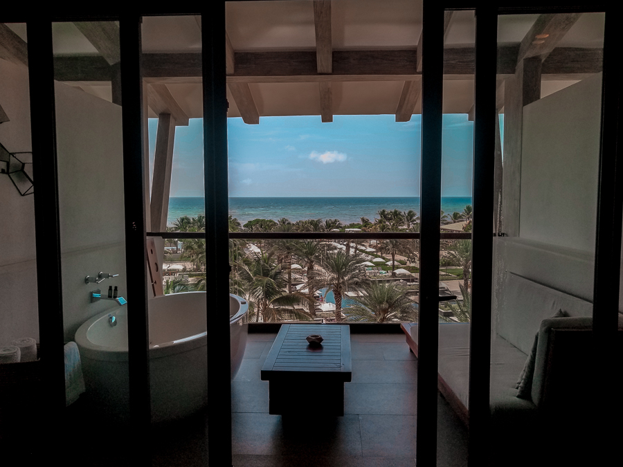 Antes de contarmos sobre nossa suíte, aqui vão algumas características e informações sobre o UNICO 2087. Começando pelo nome, 20°N 87°W são as coordenadas geográficas do hotel. Ele possui 448 quartos, é um hotel 5 estrelas, faz parte do renomado selo The Leading Hotels of The World, foi inaugurado em março de 2017 e já ganhou diversos prêmios, como o World Travel Awards (WTA), nas categorias “Melhor Hotel Cultural do México e da América Central” e o “Melhor Novo Hotel do México e da América Central”. Ou seja, considere-o fortemente quando pesquisar sobre hotéis em Playa del Carmen.