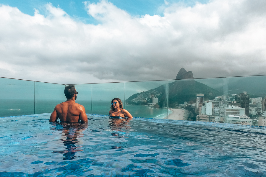 Um dos principais atrativos do Hotel Praia Ipanema é a sua cobertura. Nela os hóspedes têm a disposição uma piscina com borda infinita e aquecida, sauna a vapor e um bar. Inegavelmente o visual dali é sem igual.