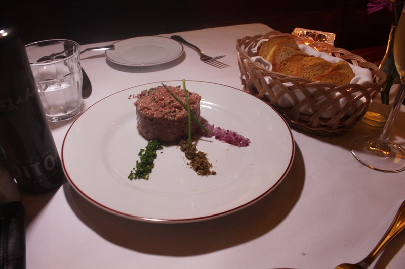 A seguir pedimos a nossa entrada preferida, o Steak Tartare (R$48,00) . Ele é preparado na sua frente pelo maître Zico, uma verdadeira obra de arte surgindo. E depois de pronto você atesta que essa é a melhor entrada da casa, acompanhada das toradinhas de Brioche quentinhas. Nós somos muito fãs desse prato.