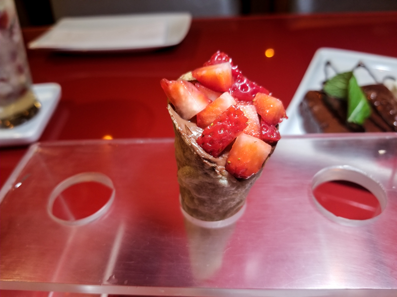 Manekicrok de Nutella com Morangos (R$16,90), cone de casquinha crocante com recheio de morango e nutella, não tem erro né. Muito boa essa também, porém é pequena.