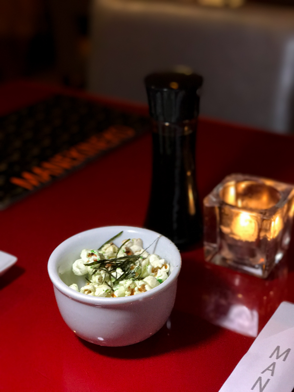 Pipoca de Wasabi, sim pipoca! As boas vindas do Manekineko foram pipocas de Wasabi, uma maravilha. Já começamos bem.