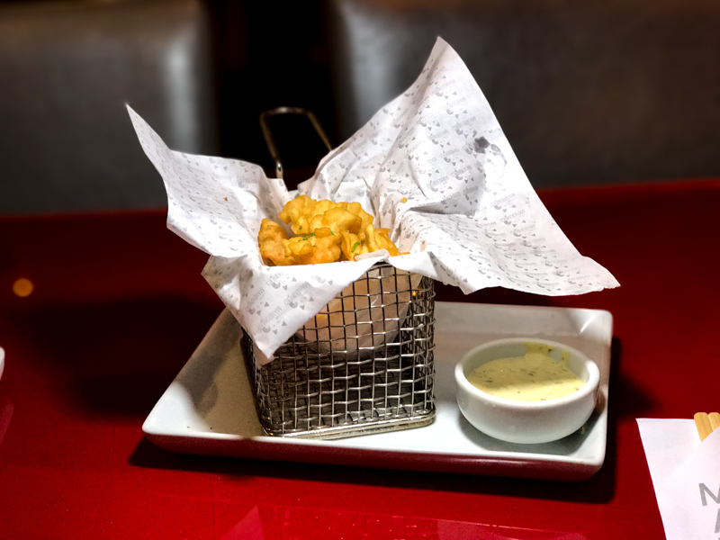 Estalinhos de Lagostim (R$23,90), são pedaços de lagostim empanados acompanhados por um aioli cremoso de endro. Camila disse que poderia comer aquilo a noite toda!