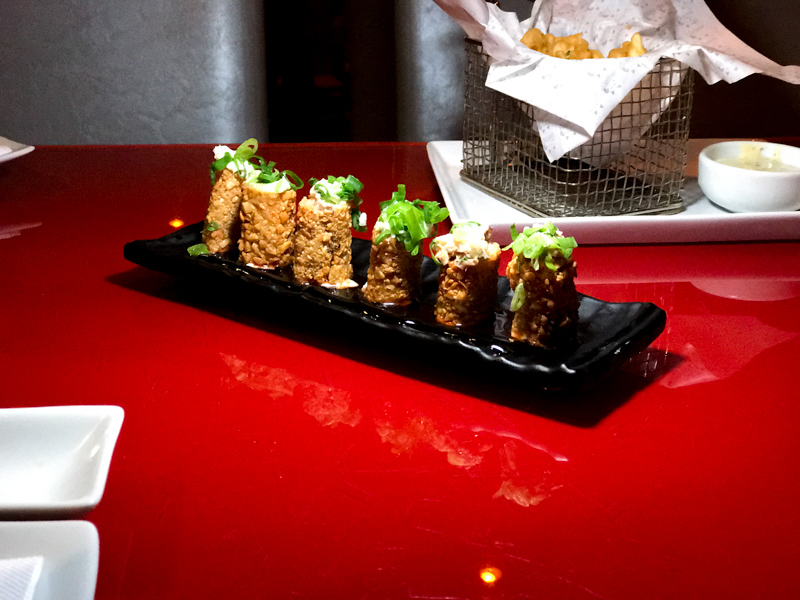 Mini Torres Crocantes de Salmão (6 unidades por R$26,90), estavam bem crocantes e recheadas, adoramos.