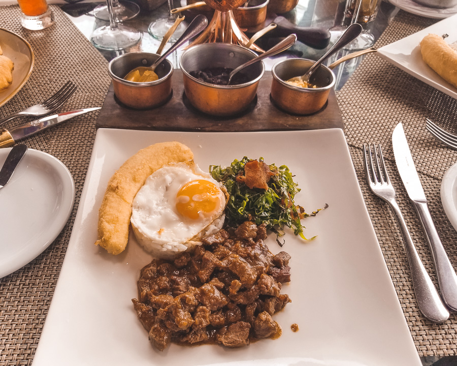Já a quarta opção é um prato feito, o Picadinho Rubaiyat. Essa foi a minha escolha. Maravilhosa! Um picadinho de baby beef acompanhado por ovo caipira, couve, banana, farofa Luiz Tavares, arroz e feijão. PF de respeito e muito bom.