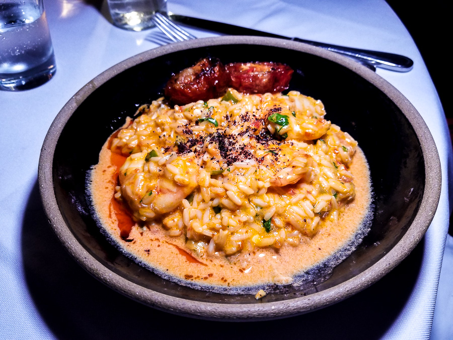 O outro principal foi o Riz aux Chevettes, arroz jasmim cremoso, camarões grelhados, tomate confit e molho bisque (R$78). Também estava uma delícia. Ambos são bem servidos!