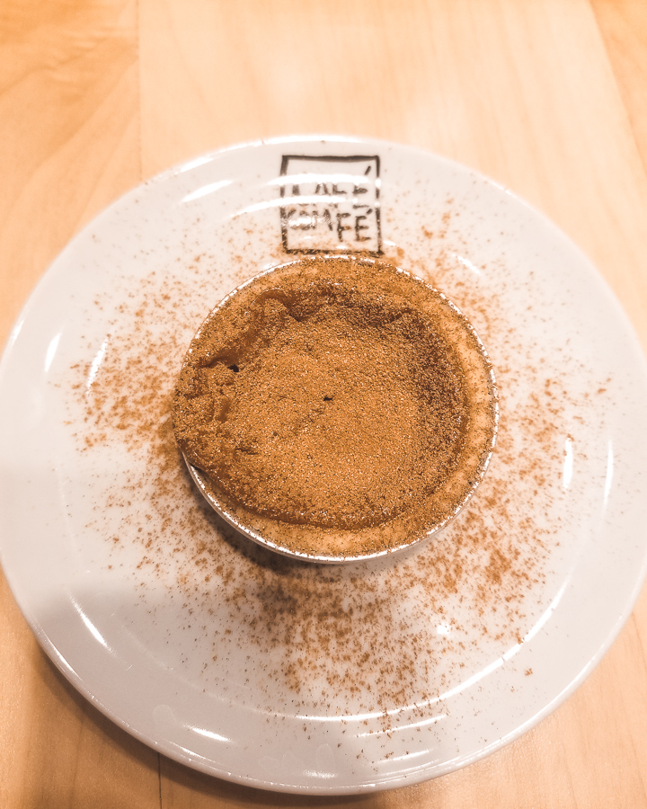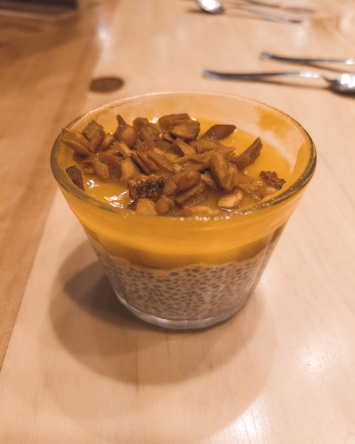 Da ala dos doces o Pudim Vegano de Chia com Purê Manga e Leite de Coco é bom, mas não empolga. Diferente da Empadinha de Doce de Leite com Gelato Fior di Latte (R$ 16,00) que estava uma delícia!