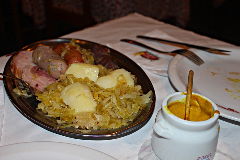 Para o prato principal pedimos o “Prato Matador” que vem com salsichas brancas e bock, kassler, bacon, chouriço, morcela, chucrute e batatas cozidas. Assim fizemos uma viagem gastronômica pela Alemanha em apenas um prato. Adoramos. Bem servido e com uma explosão de sabores incríveis, custou R$60,50.