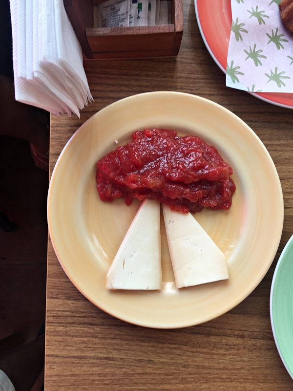 Goiabada Casa Carandaí com Queijo Serra da Canastra Para beber pedimos Capuccino (R$10,00) e Suco de Laranja (R$10,00). E assim estava montado nosso café da manhã na Casa Carandaí.