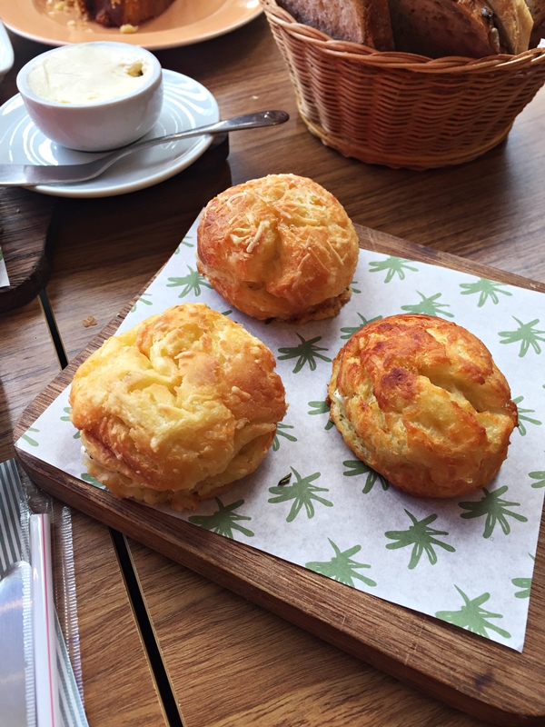 Petiscos de Rabanada Cannele feito com fava de baunilha Continuando nossa viagem gastronômica pela França, pedimos uma Cesta de Gougerès (R$18,50 com 3 unid.) com adição de queijo minas e orégano (R$7,00) poque né, se é pra comer, comemos direito ahahah. Os Gougerès são uma espécie de pão de queijo francês, originados na refião da Borgonha.Tradicionalmente feito com queijo gruyere, que é acrescentado à massa choux (aquela do profiterólis), portanto ele fica oco no meio, mas cremoso, com intenso sabor de queijo.